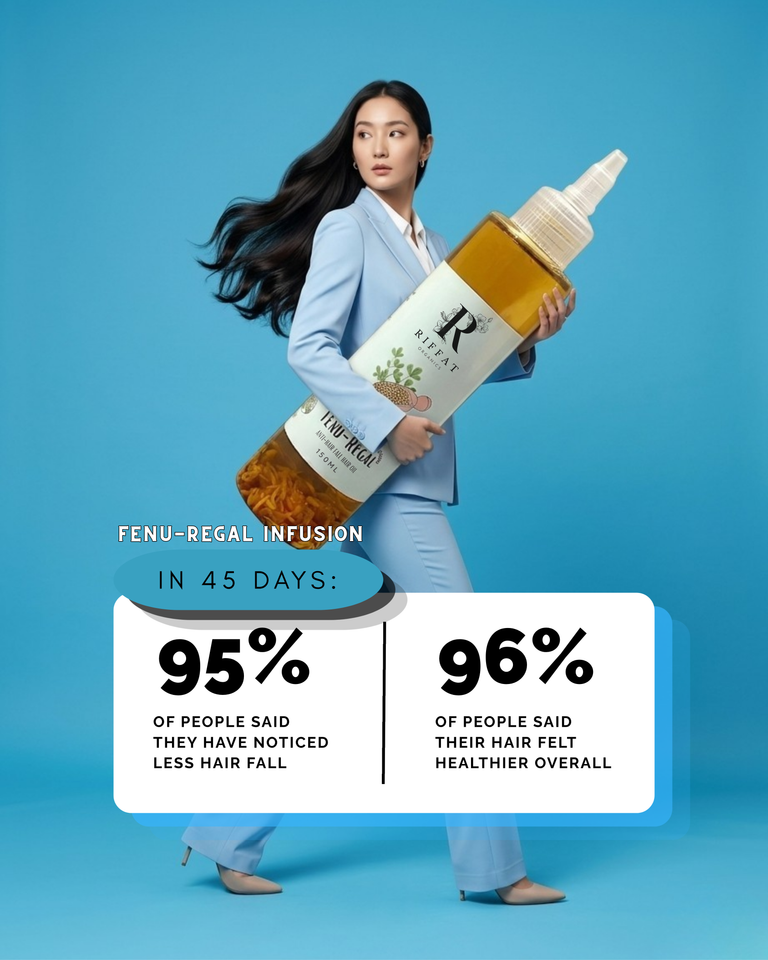 I've been using fenu regal hair oil from last 30 days and i've seen significant change in my hair, hair fall reduced by 90% im so happy. God bless you guys.