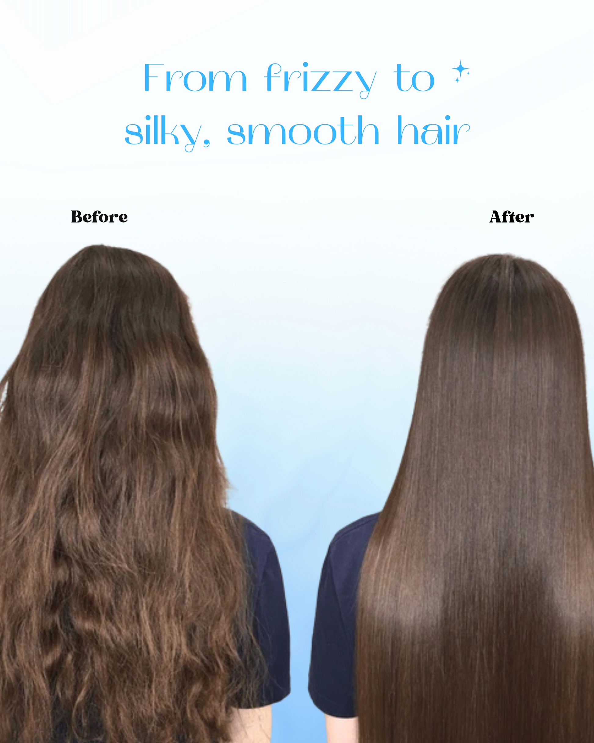 Repair Ritual deeply nourishes the strands, leaving hair smooth, soft, and radiant with a glass-like shine. It helps detangle the ends, reduces frizz for a polished finish, and strengthens the hair to minimize breakage and fall, promoting healthier, more manageable hair with every use.